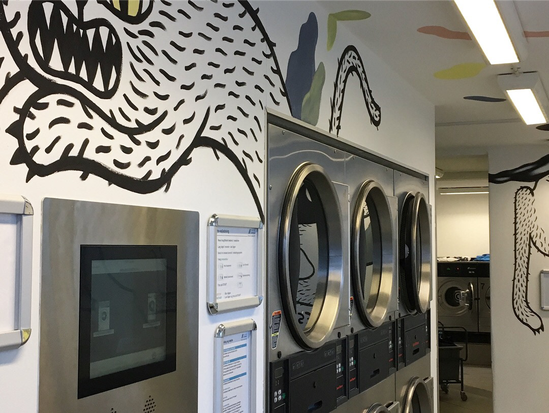 I did a free-hand decor of a laundromat.